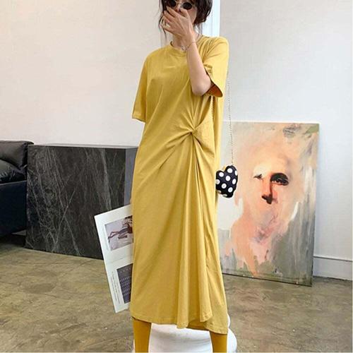 여성 롱 원피스 루즈핏 꼬임 데일리 여자 여름 원피스 라운드 웨어