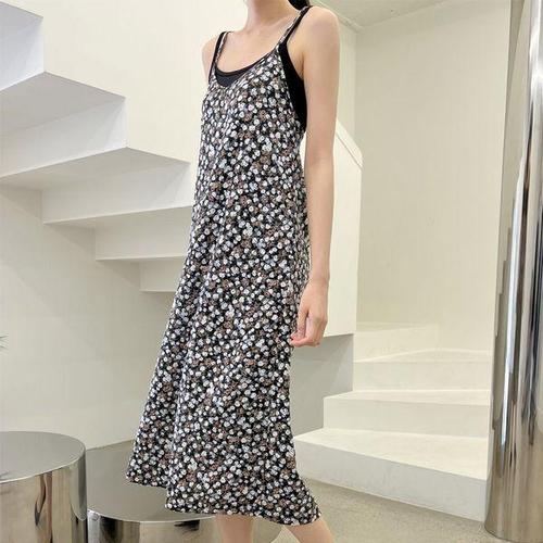 데일리앤 퍼스트 꽃무늬 셔링 레이어드 끈 나시 원피스 빅사이즈 휴양지 여름 롱 뷔스티에