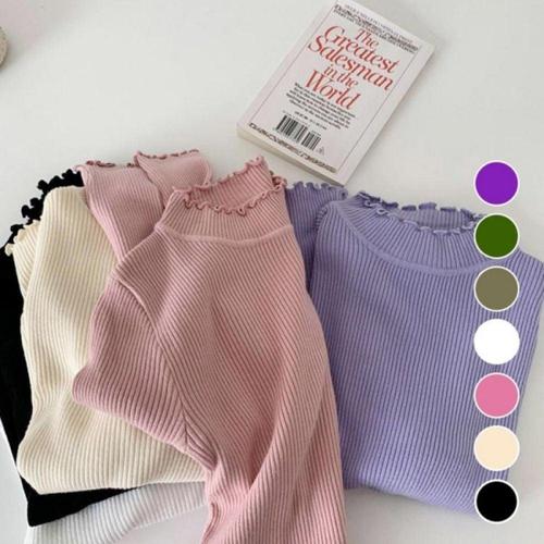 물결 넥 여성롱티셔츠 러블리 라인 레이스나시