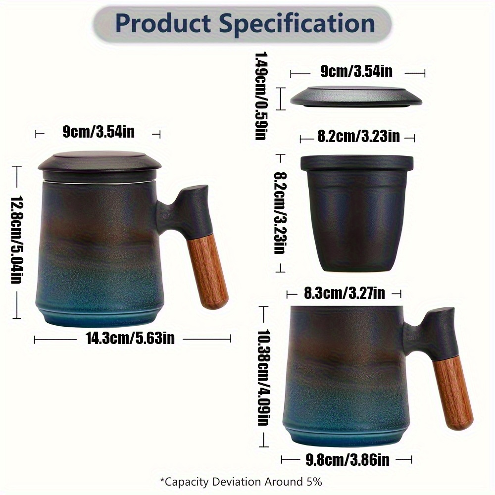 TEMU 이 14.5온스 그라데이션 블루 세라믹 티컵은 필터와 뚜껑이 함께 제공되어 티 애호가를 위한 다용도 및 재사용 가능한 옵션입니다. 나무 손잡이가 특징이며, 루즈 티 또는 기타 뜨거운 음료를 준비하는 데 적합합니다.