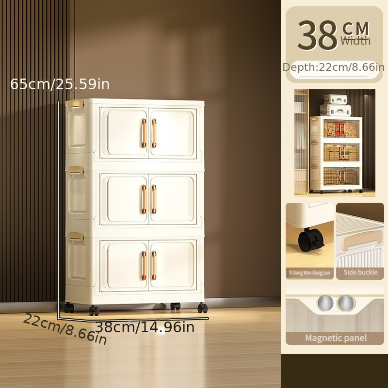 TEMU 가정용 보관 캐비닛 - 접이식 설치 - 캐스터가 장착되어 있습니다 - 투명한 보관 캐비닛 - 거실, 침실, 주방 및 용품실에 적합합니다.