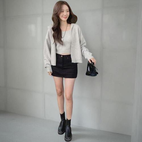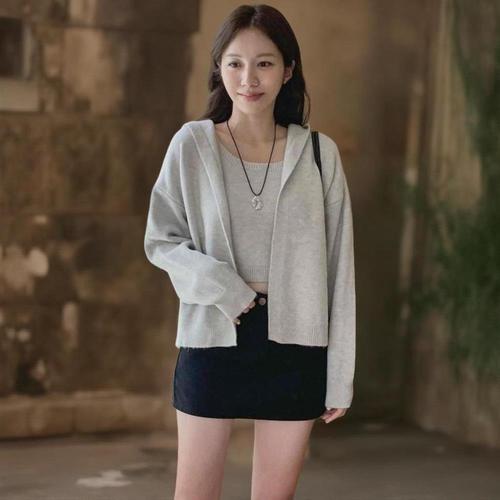 [옷자락] 여성 시즌 간절기 크롭 니트 민소매 후드 가디건 세트