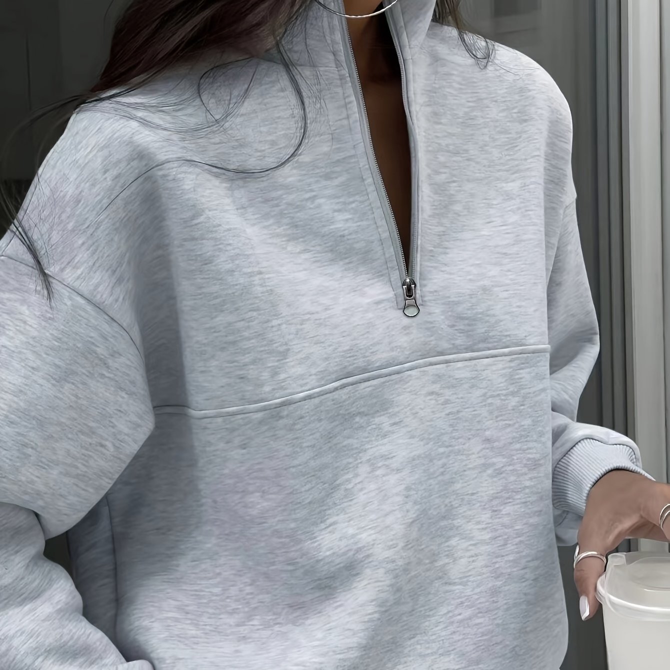 TEMU 여성 캐주얼 하프 지퍼 풀오버 스웨트셔츠 - 단색 가을/겨울 긴팔 상의