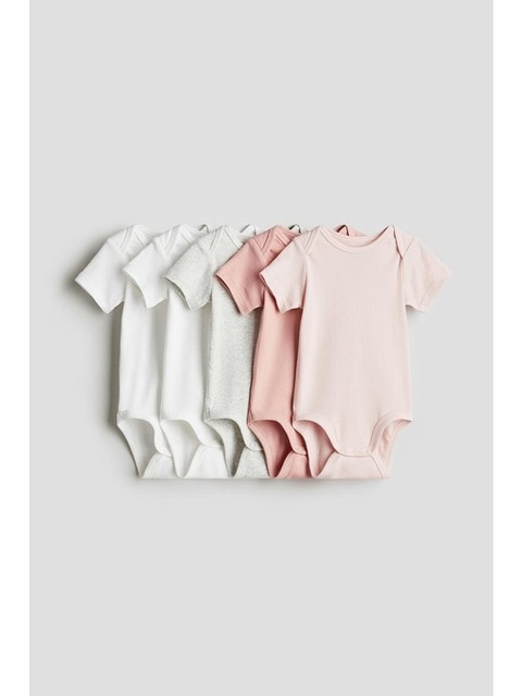[에이치엔엠] 코튼 바디수트 5피스 세트 라이트 핑크/라이트 그레이 멜란지 1088033002