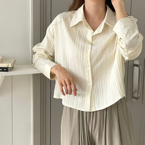 슈팅스타 / 심플 베이직 플리츠 루즈핏 크롭 간절기 긴팔 셔츠