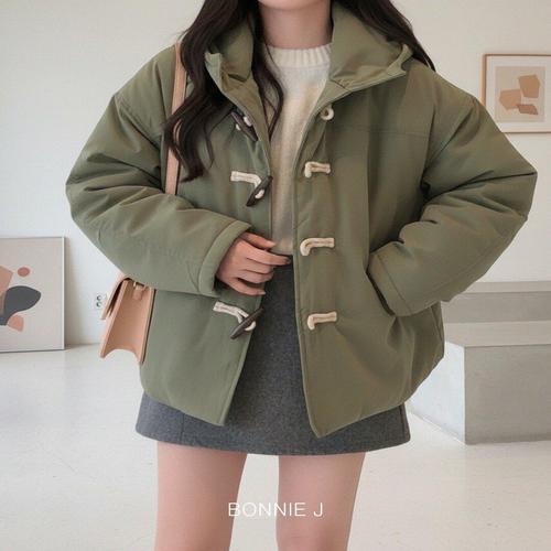 [보니제이]후드 떡볶이 토글 버튼 누빔 안감 루즈핏 숏 패딩 점