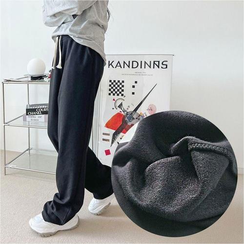 기모바지 남녀 허리밴딩 와이드핏 일자 면바지 겨울바지 2색 WFKQET3