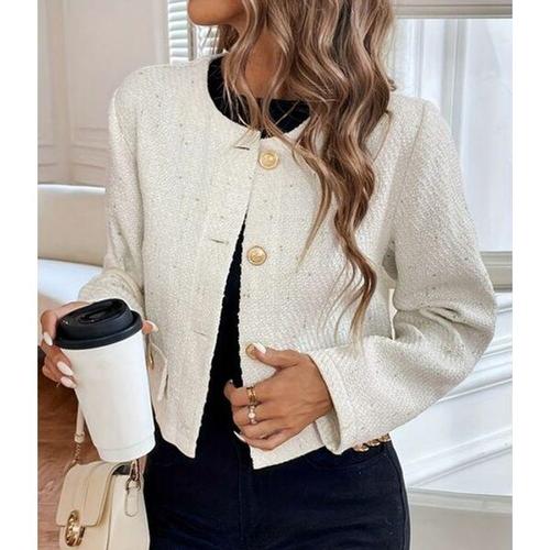 [끌레아]숏 트위드 자켓 크롭 스타일 재킷 봄가을 노카라 디자인