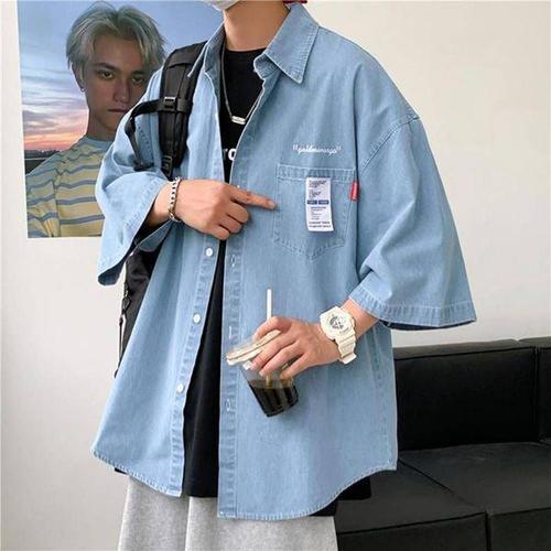 [에이치플러스몰]남자 연청 반팔 셔츠 여름 캠퍼스 패션 청셔츠 청남방