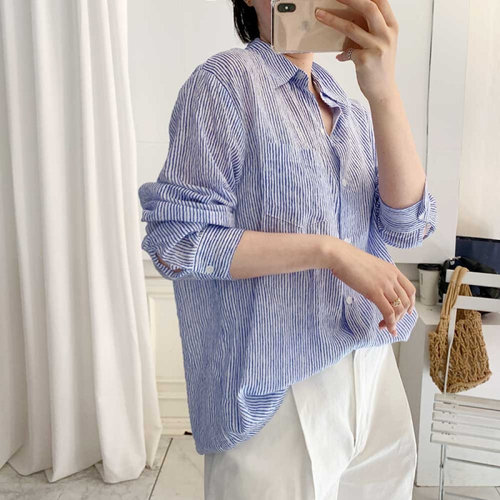 해피유통 남성 얇은 헨리넥 린넨 셔츠 루즈핏 에어 캐주얼 긴팔 셔츠 코트 SHM003