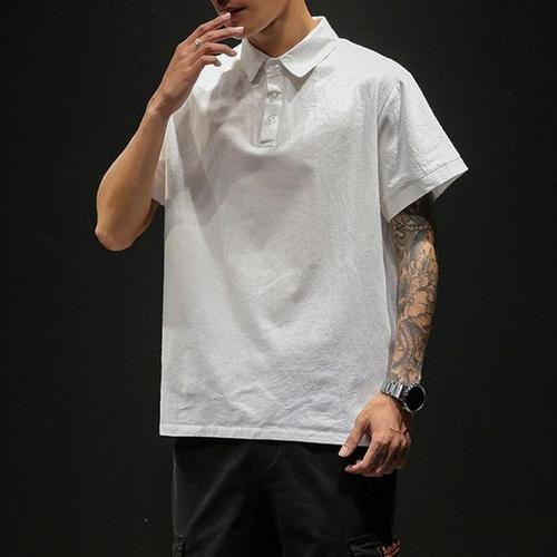 bequiller 남자 스톤 코튼 카라반팔티셔츠