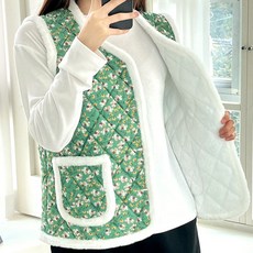 꽃무늬 촌캉스 겨울 기모 할머니 엄마 어르신 조끼 누빔 양털 융털 단추 보온 캠핑 남성 여성 커플 조끼