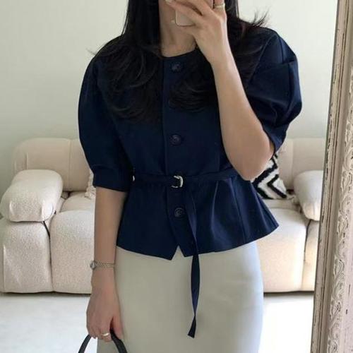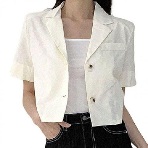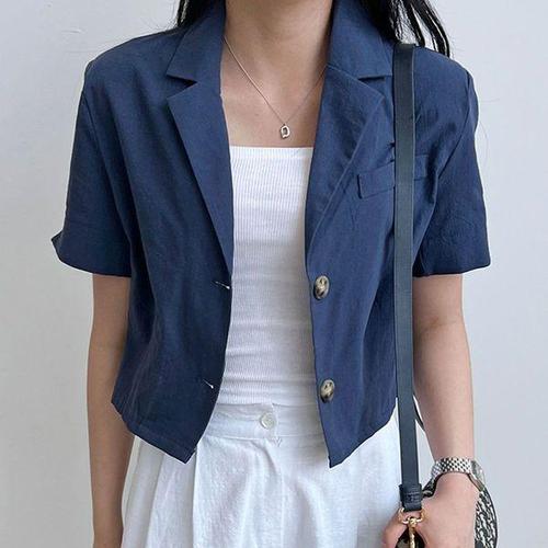 [에이치플러스몰]크롭 셔츠 반팔 자켓형 여름 단정한 데일리 숏 아우터