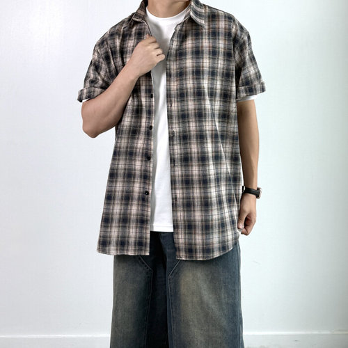 베이직 스타일 패션 핏 좋은 남녀공용 린넨 체크 반팔셔츠 여름남방 WFKNZJE