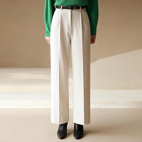 |KHP87CB|여성 핀턱 버튼 디테일 와이드 레그 슬랙스