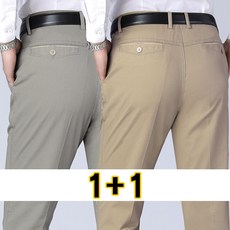 1+1 프리미엄 정장 바지 중년 남성 봄가을 캐주얼 코디 하이웨스트 팬츠 아빠 패션 루즈핏 얇은 순면 바지 LJX