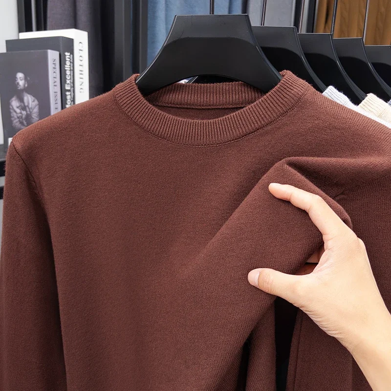 따뜻한 루즈핏 남성 니트 스웨터 부드럽고 푹신한 라운드넥 캐주얼 겨울 패션 두꺼운 긴팔 청년 스타일 단색