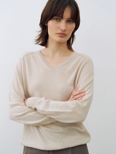 [마레디마리] Cashmere 100% V Neck Knit Top Beige