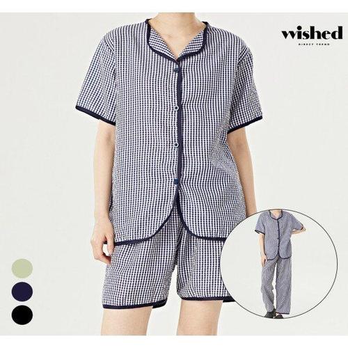 [위시드]베이직 노카라 잔체크 패턴 쓰리피스 잠옷 셋업 (WIBBOP063)