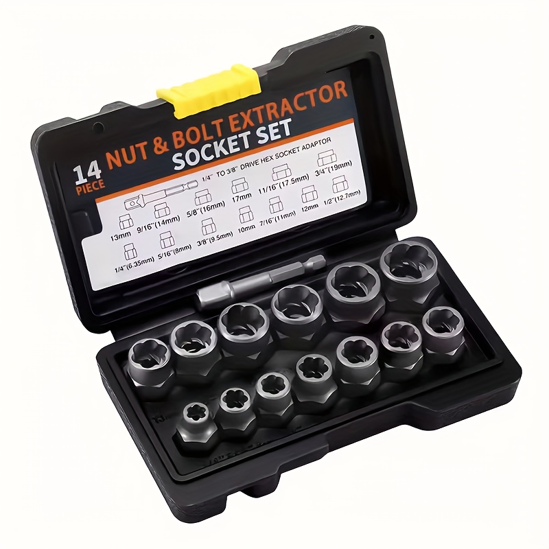 TEMU 14개 너트 및 볼트 추출기, 녹슨 너트 추출기, 수리 도구 세트 - 효율적인 추출을 위한 쉬운 추출 도구 및 육각 소켓 어댑터 포함