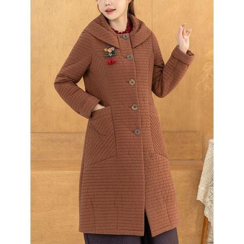 AOKADA 퀼팅 꽃무늬 후드 롱패딩 누빔 롱코트 여성 겨울 점퍼