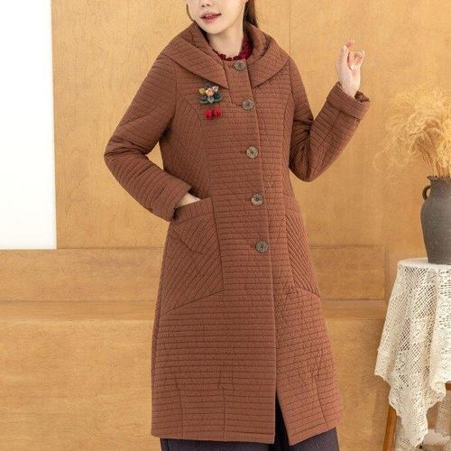 [드리다]여성 가을 겨울 캐주얼 빅사이즈 누빔 후드 모직 롱 코트 40-50대 미시 중년여성 엄마옷 출근 모..