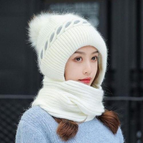 겨울모자 따뜻기모 목도리 니트 화이트 겨울 털모자 방한 WFKZIVE