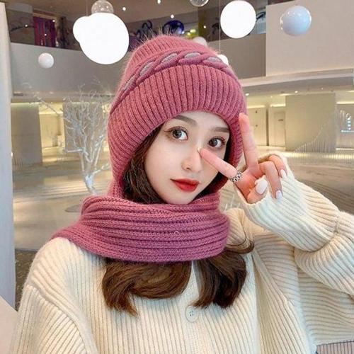 겨울모자 따뜻기모 털모자 목도리 방한 니트 겨울 퍼플 WFKZIVG