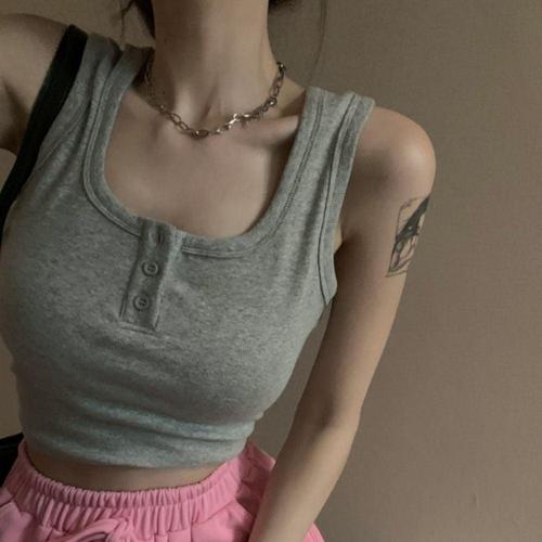 골지 크롭나시 크롭 버튼 여름 탑 버튼디테일 WFKPDGV