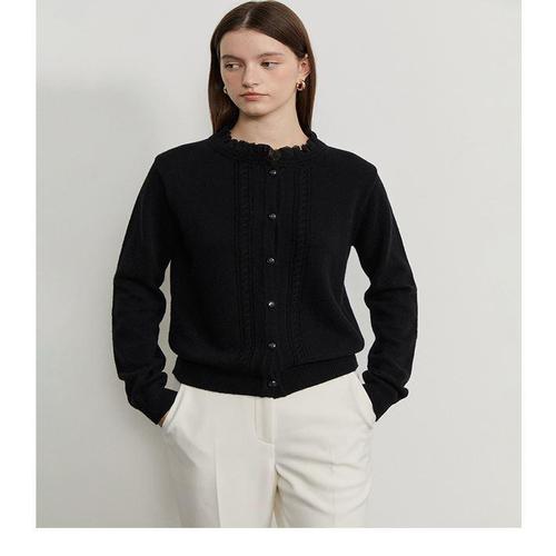 [더아이잗]레이스넥 패턴라인 니트 가디건 IRAA1CD021-JJ