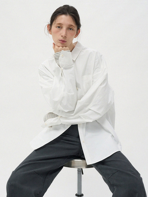 [오프 앤드 어웨이] 커브드 슬리브 자수 코튼 셔츠_off white