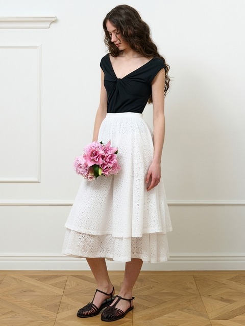 [레트흐드레뚜왈] 다나 레이어드 셔링 맥시 스커트_화이트