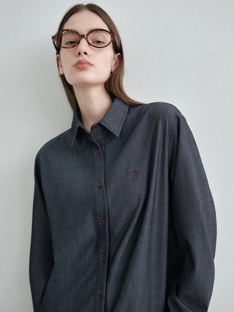 [몽돌] 세미 오버핏 워싱 데님 셔츠 인디고 MDSH025INDIGO
