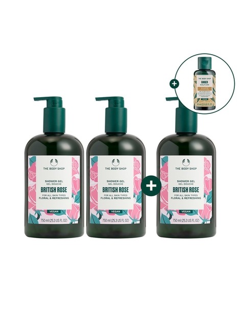 [바디샵] [2+1] 브리티쉬 로즈 샤워 젤 750ML 대용량 세트 (+여행용 진저 샴푸 60ML) (888078)