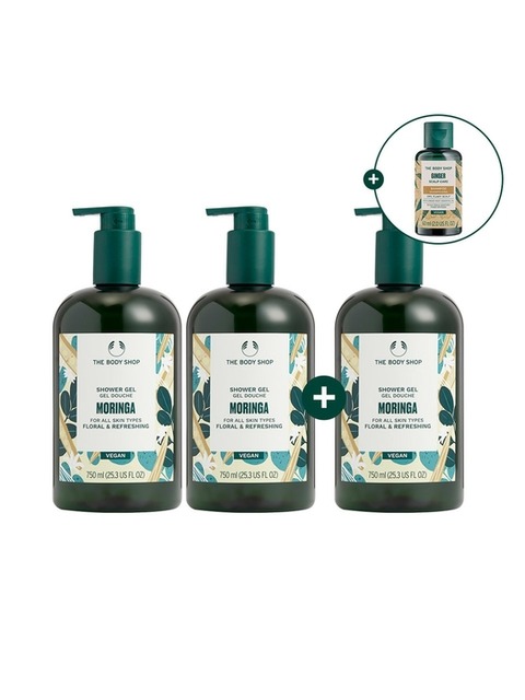 [바디샵] [2+1] 모링가 샤워 젤 750ML 대용량 세트 (+.여행용 진저 샴푸 60ML) (886605)