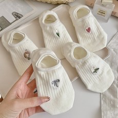 워더미 여성용 러블리 자수 덧신 페이크삭스 5종 세트 M1051