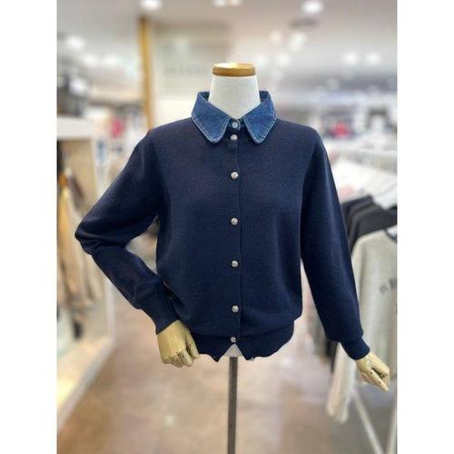 샵앤) 여성 데님 카라 라운드 단추 긴팔 가디건 DGB-WCD-4771-네이비