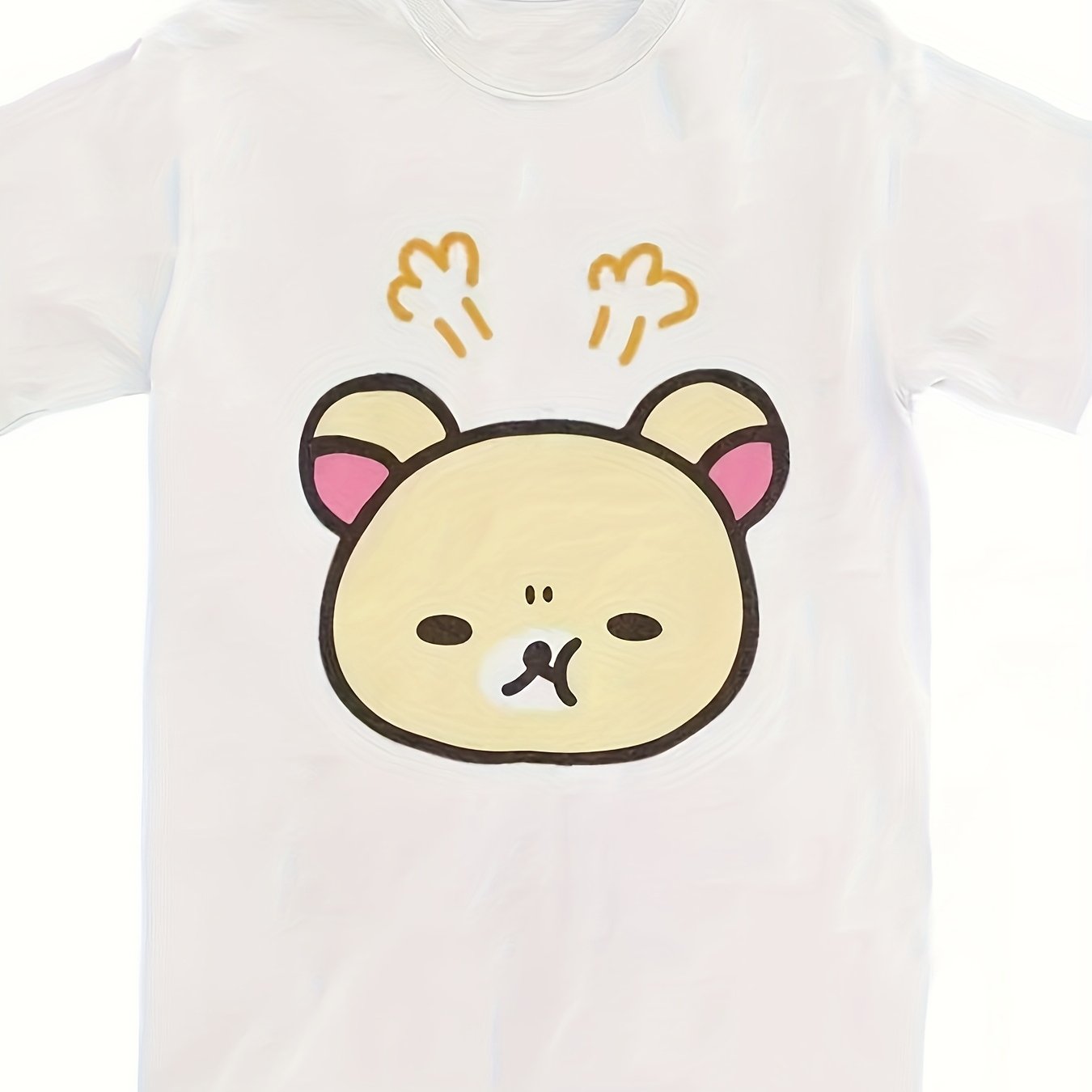 TEMU 귀여운 만화 곰 프린트가 있는 캐주얼하고 패셔너블한 반팔 상의, 트렌디하고 통기성 좋은 여유로운 핏