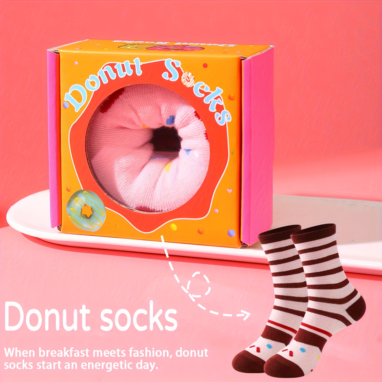 TEMU 1쌍 KH 재미있는 도넛 박스 양말 - 남녀를 위한 독특한 생일//크리스마스 선물, 귀여운 도넛 디자인, 파티용 통기성 중간 길이 양말, 일상 및 특별한 날에 적합 - 재미있는 노벨티 아이디어, 파티 액세서리, 유쾌한 디자인, 편안한 착용감, 재미있는 소품, 양말 애호가를 위한