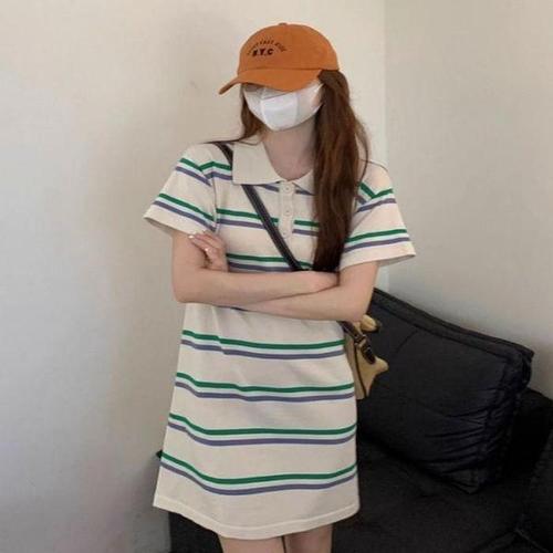 [셀러허브_여성트랜드패션]ONM 여성용 스트라이프 카라 미니 원피스 데이트룩 귀
