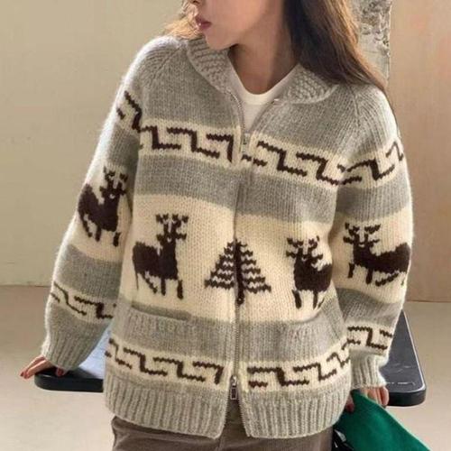 [에이치플러스몰]도톰원단 노르딕 니트 집업가디건