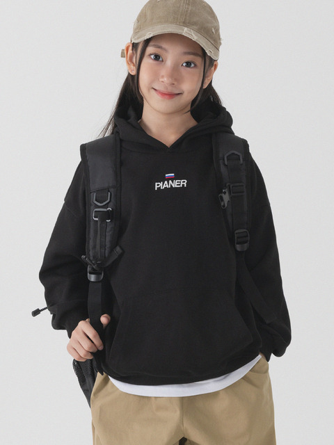 [피아네르] kids_플래그 자수 오버핏 후드티 (블랙)