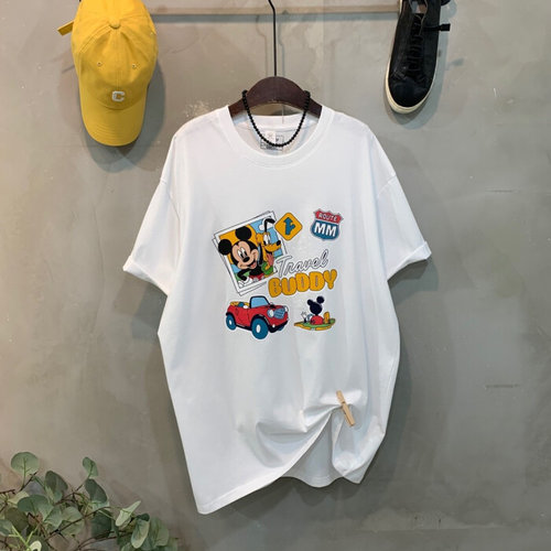 디즈니 미키 마우스 t 셔츠 여름 만화 중간 길이 반팔 t 셔츠 여성용 새로운 미키 느슨한 대형 하프 슬리브 탑