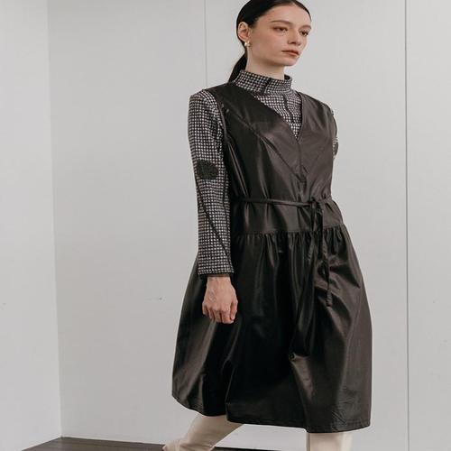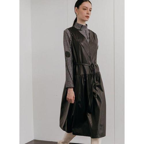 [막스까르띠지오]레더 라이크 딥브이 롱원피스