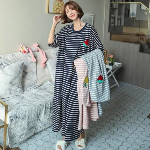 [옷자락] 여성 잠옷 원피스 도트무늬 루즈핏 롱홈웨어