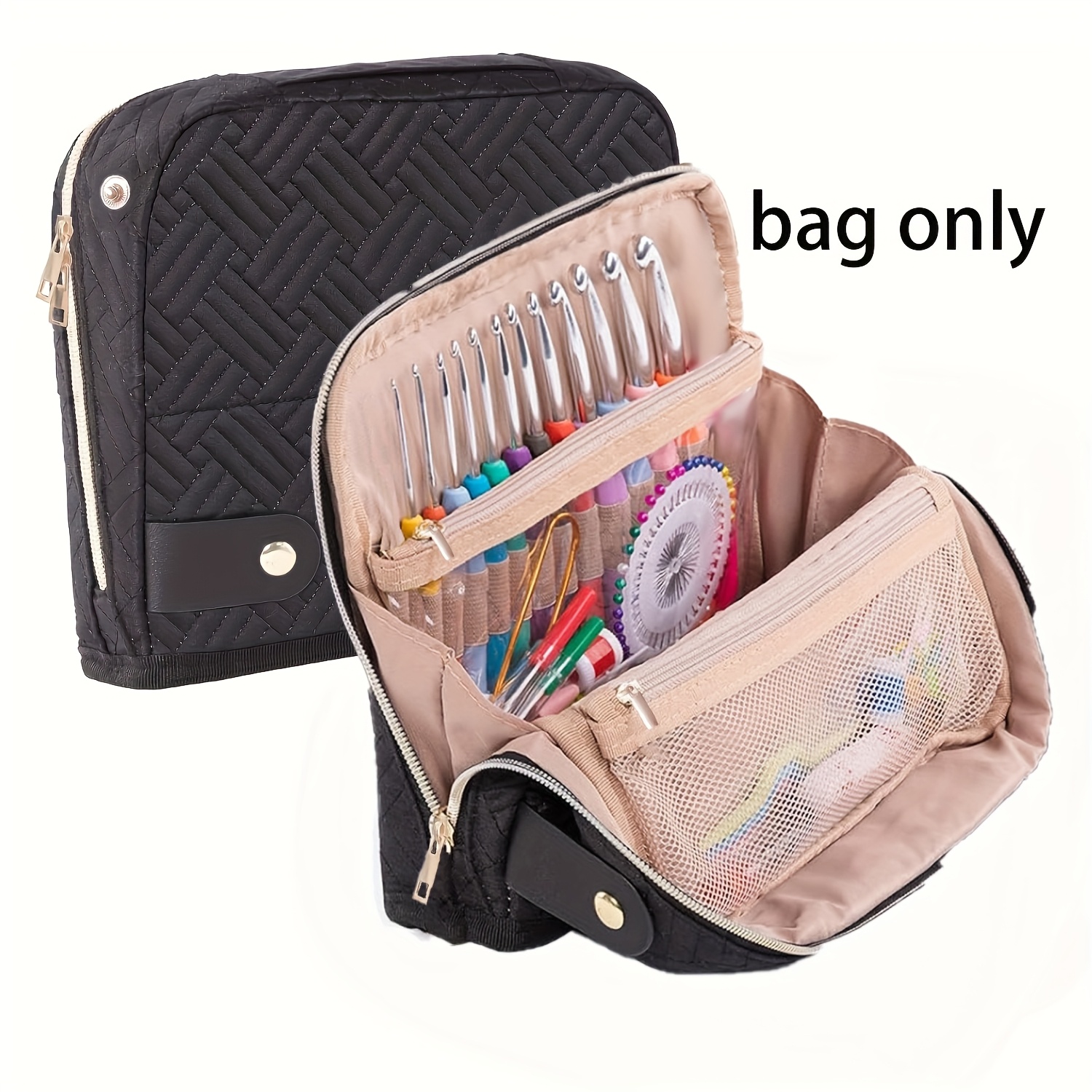 TEMU 퀼팅 코바늘 케이스 - 스탠드형 디자인, 다중 수납 공간, 튼튼한 원단, 뜨개질 및 코바늘 용품, 바늘, 액세서리 보관 - 휴대용 수공예 프로젝트 보관, 선물 (핑크, 보라, 녹색), 코바늘 액세서리