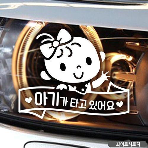 [BZJKM7VX_4B]화이트 자동차스티커 리본띠 아기타고있어요