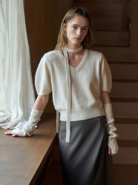 [라메레이] 폭스 벌룬 하프 슬리브 니트탑_아이보리