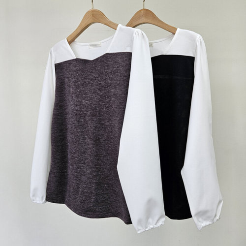 나야홍 / 빅사이즈셔링블라우스 T157L502 가련하트넥배색블라우
