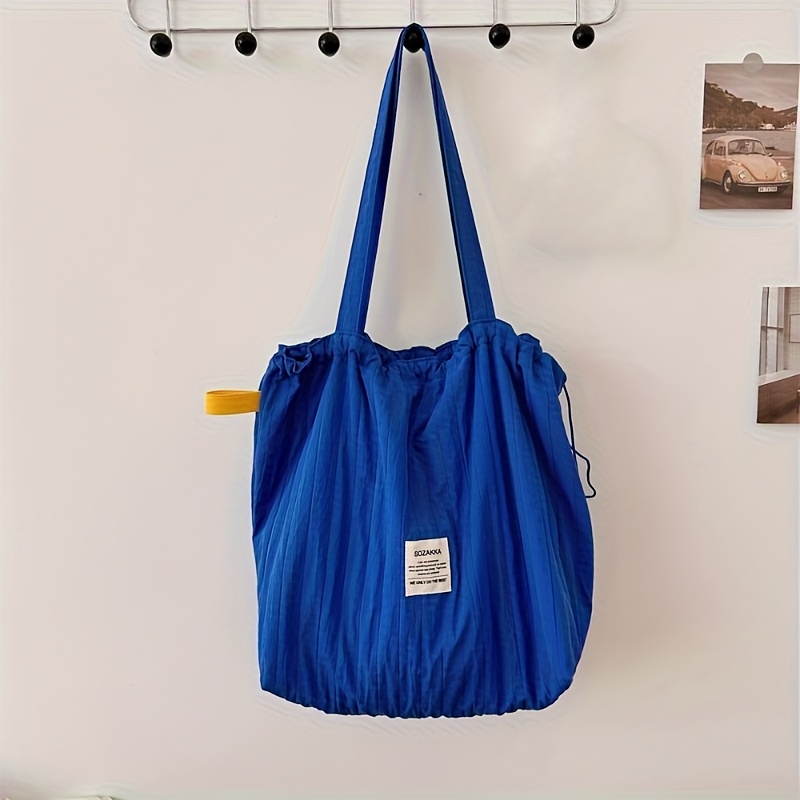 TEMU 여성용 도시 스타일 조절 가능한 숄더 토트백 - 대용량 드로우스트링 클로저, 폴리에스터 안감 내구성, 캐주얼 출퇴근 및 쇼핑 가방 카키, 오렌지-레드, 그린, 블랙, 튼튼한 핸들 구조